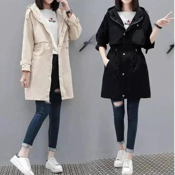 Trenchcoat med huva och dragsko i midjan för kvinnor