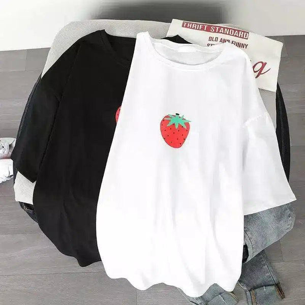 Casual bomulls-T-shirt med fruktdekorationer