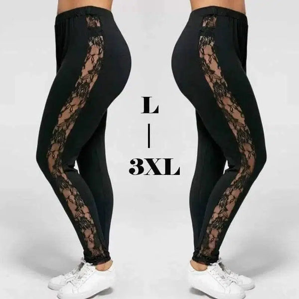 Plus Storlek Kvinnor Holllow Out Spets Leggings
