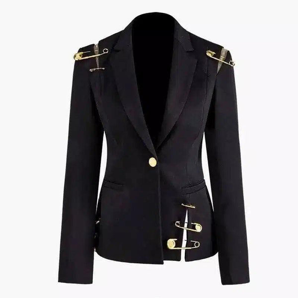 - Kavaj Neckkline/Shoulder Style: hakat kavajslag med dekorativa axeldetaljer
