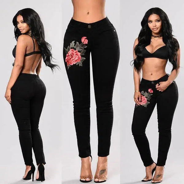 Produktbeskrivning: Svarta jeans med broderade fötter