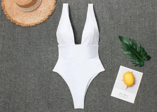 V-ringad, läckande rygg och hög midja i ett stycke för damer