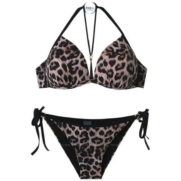 Produktbeskrivning: Leopard Bikini Trepunkt Små Bröst Samlade