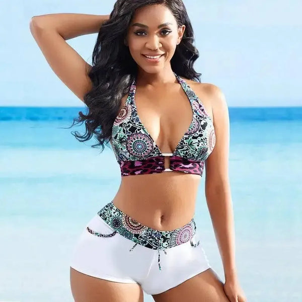 Bikini Print Split Boxershorts Europeiska och amerikanska