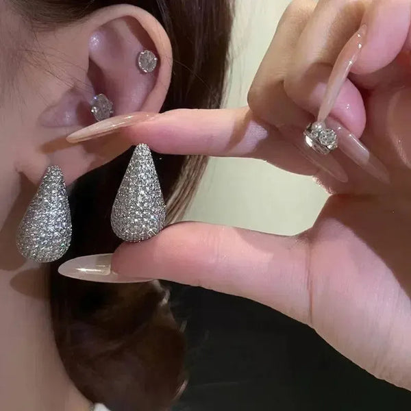 Modesmycken Vintage Chunky Dome Drop örhängen för kvinnor Glänsande rostfritt stål Tjock zirkon inlagd Teardrop örhängen örhängen kvinnor