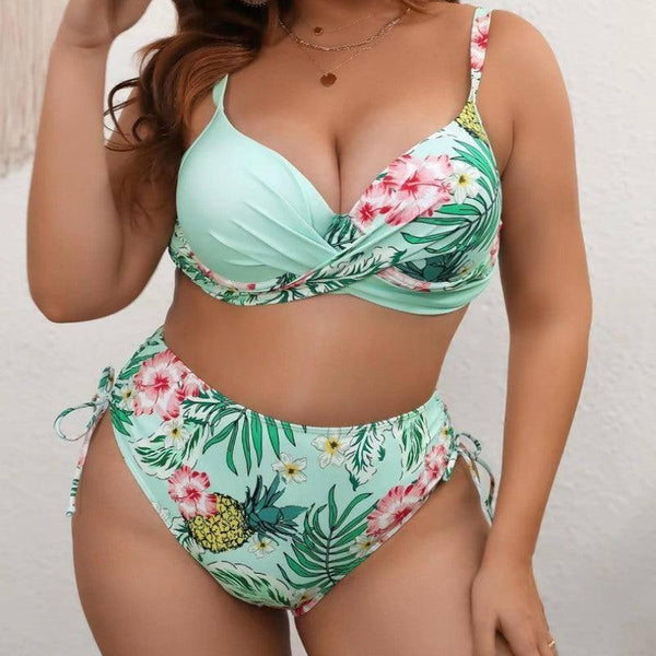 Tropisk bikini med hög midja: eleganta badkläder för alla kroppar