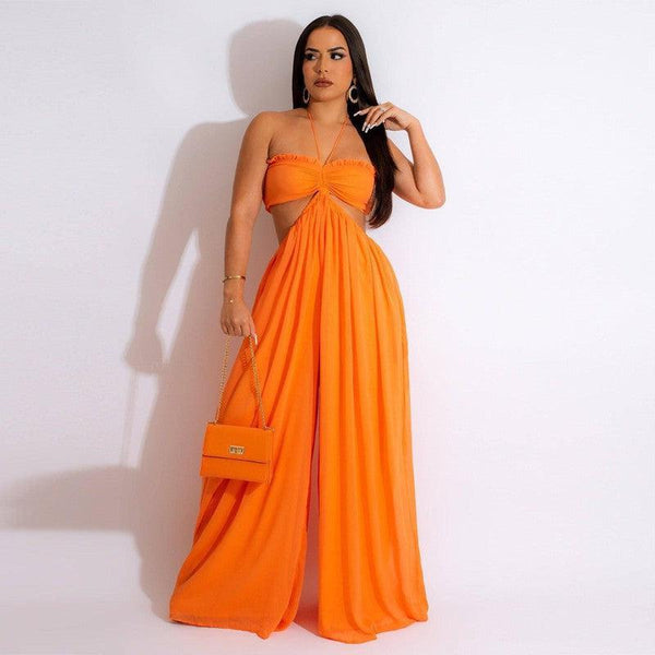 Chiffong bröstlindad bar rygg vida ben Jumpsuit European