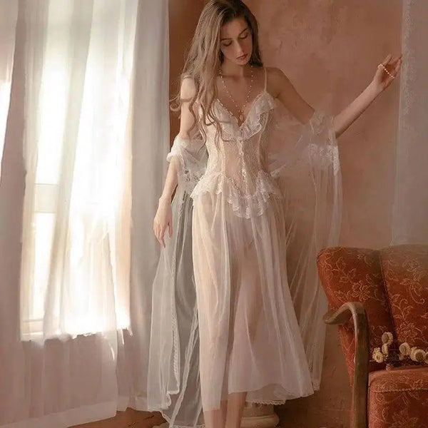 Dam Chemise Vit Polyester Spets Stretch Chemise
