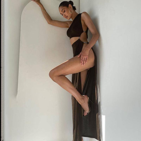 Dignified Hollow Sloping Shoulder Dress för kvinnor