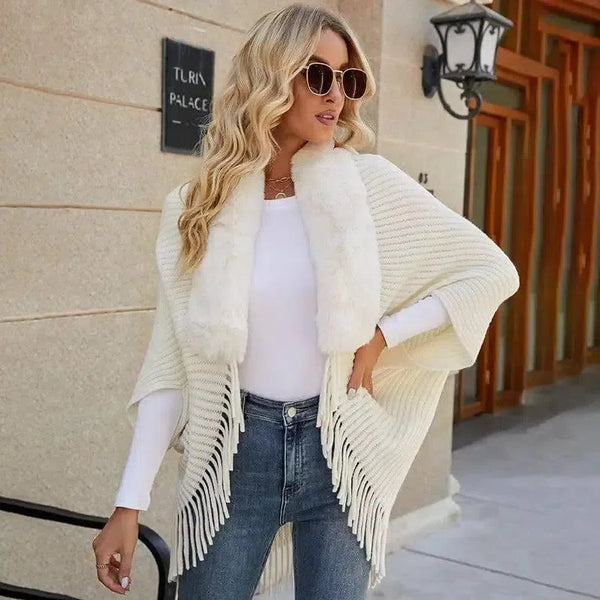 Pälskrage Tassel Sjal för kvinnor Stickad