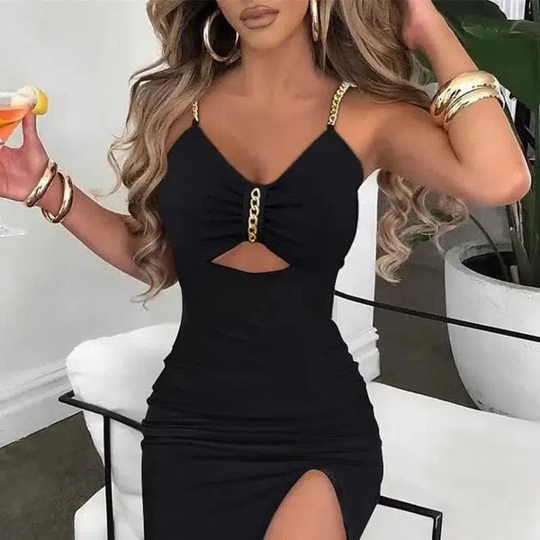 Graciös och trendig kvinnokjol med delad kedja och ihålig mantel
