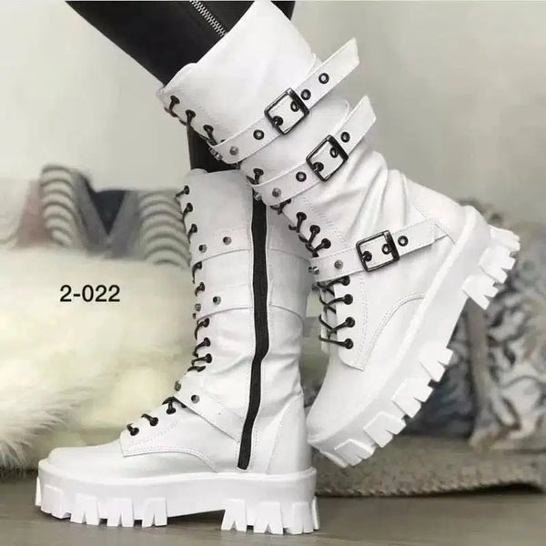 Martin Boots Lace Up Combat Boot Mid Calf Platform för kvinnor