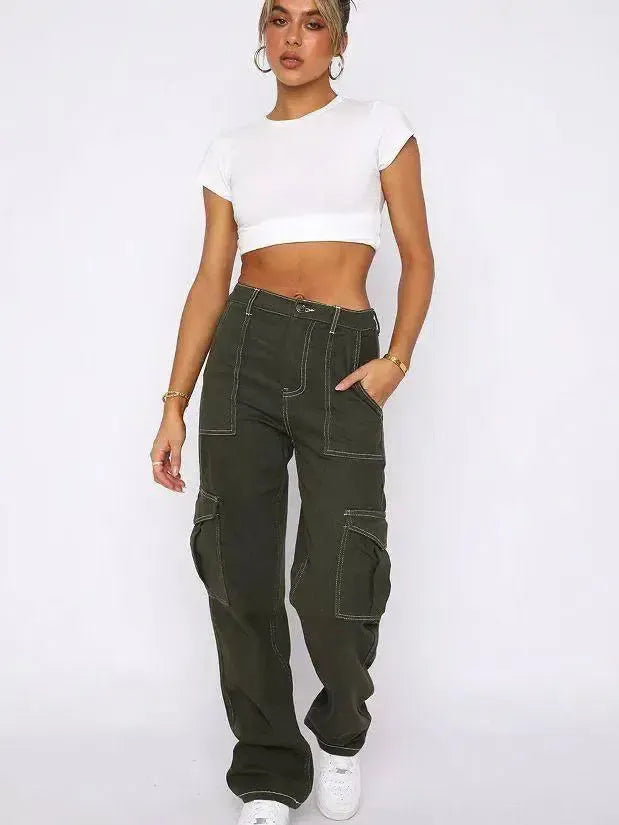 Cargo-byxor med raka sömmar och flera fickor för kvinnor