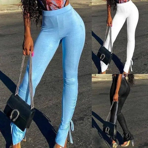 Moderiktiga byxor med sidoslits och hög midja för kvinnor