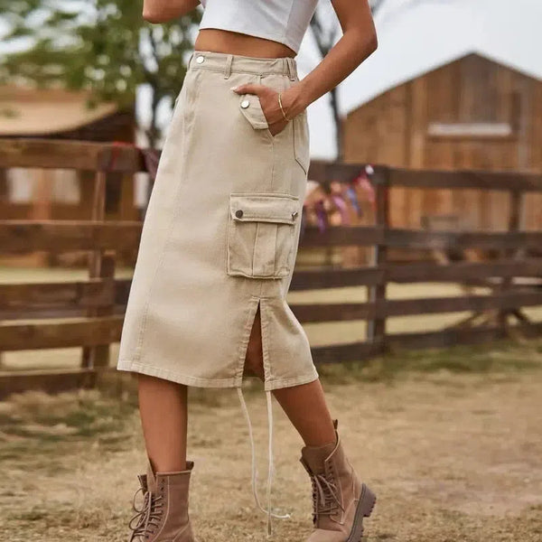 - Produkttyp: Denim snörkjol med snörning för kvinnor
