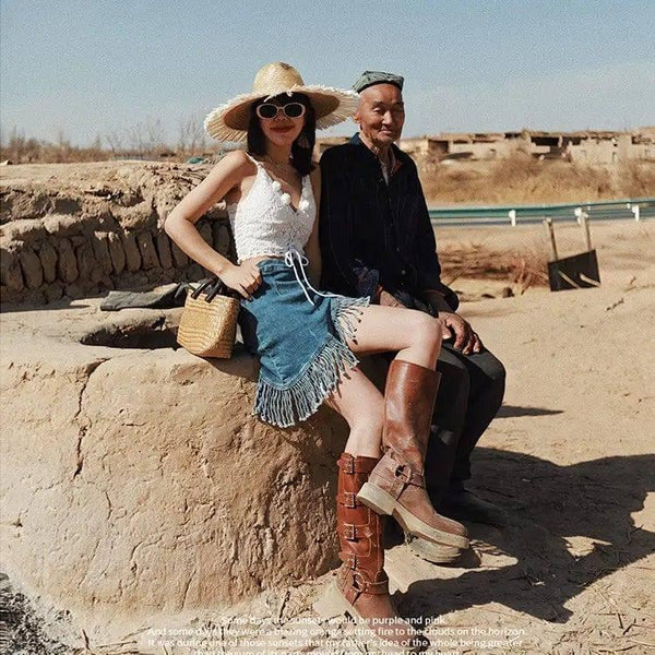 Retro irreguljär jeanskjol med tofsar för kvinnor