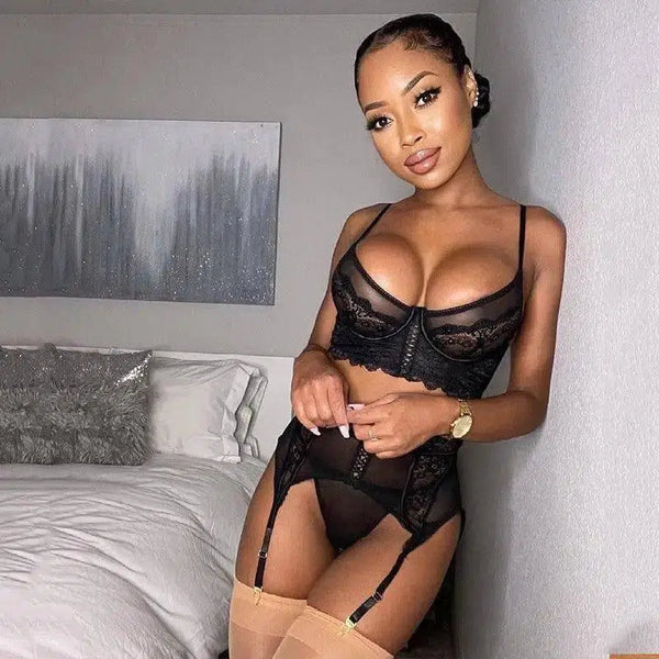 Produktbeskrivning: Kvinnlig spets ögonfrans sömmar sling underkläder tredelad