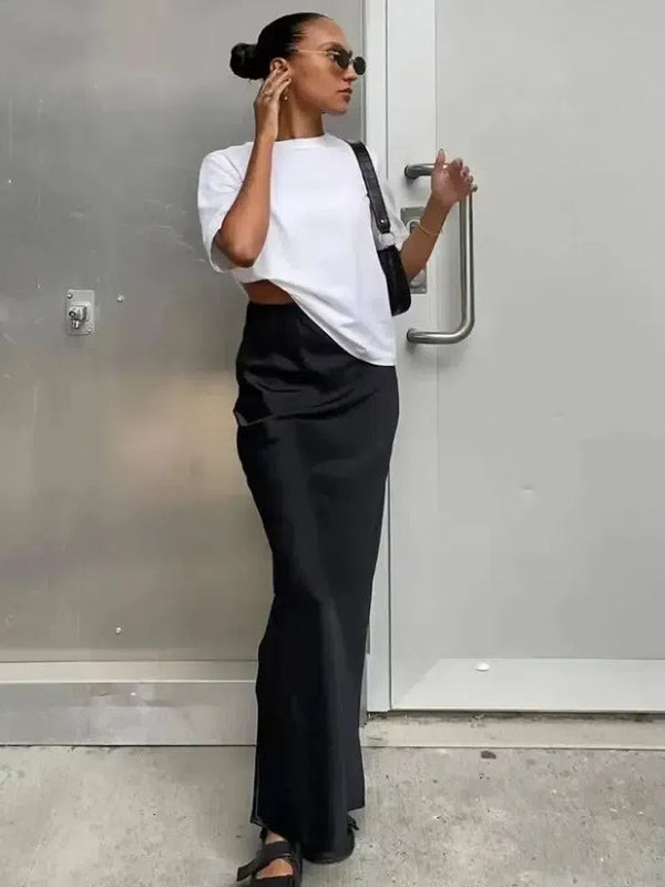 Dam Kjolar Svart Elegant Satin Mode Smala Kjolar Four Seasons