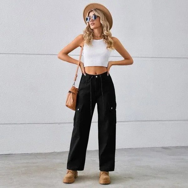 - Material: Mjuk och slitstark denim Design: Justerbar dragsko i midjan för en anpassad passform