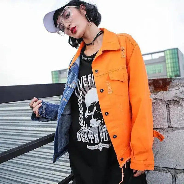 - Typ av plagg: Färgblockerad jeansjacka