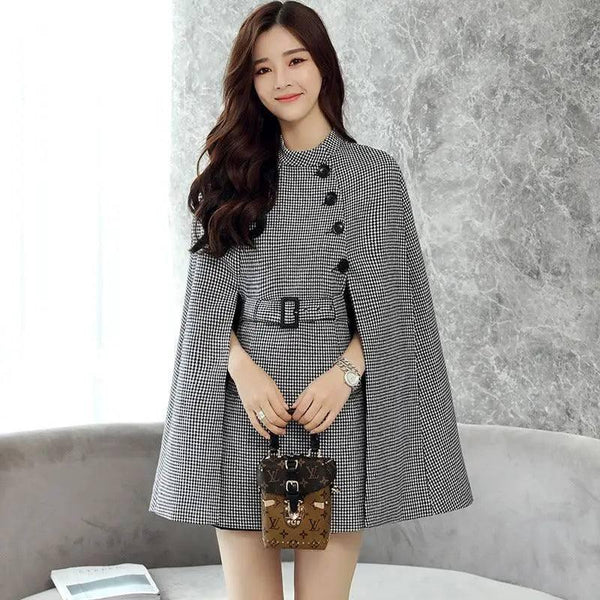 Design Wool Cape Coat med snörning och krage