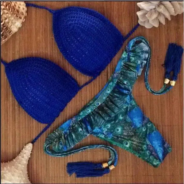 Europeisk och amerikansk stickad bikini spets med blommönster Split