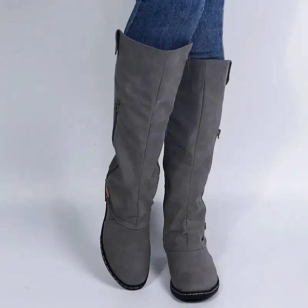 - Stil: Platta stövlar med dragkedja