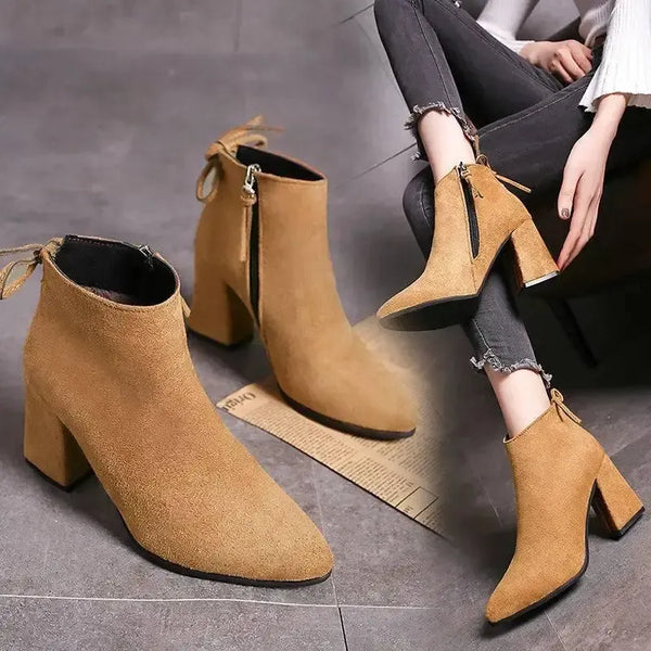 Produktbeskrivning: Europeiska och Amerikanska Martin Boots Spetsiga Högklackade Plus
