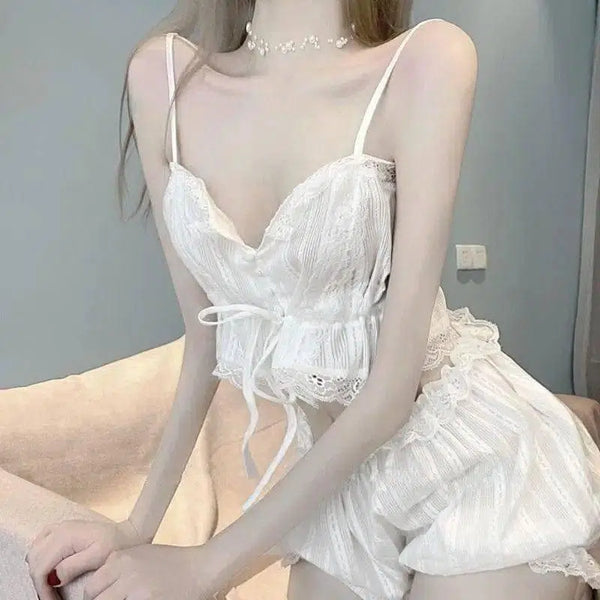 Flickor Spets Bomull Pyjamas Privat Rum Sling