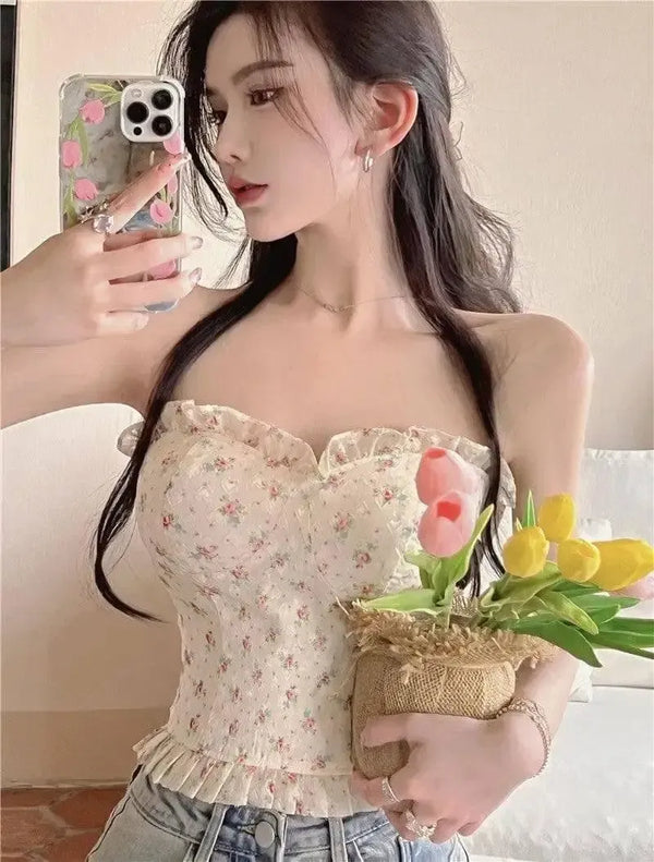 Hot Girl Blommig Underkläder Tube Top Kvinna Fishbone
