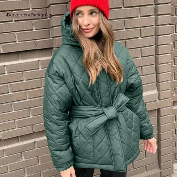 Bomullsjacka med huva Smal passform Snörning och uppknäppt uppslag Långärmad