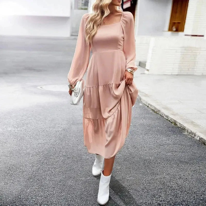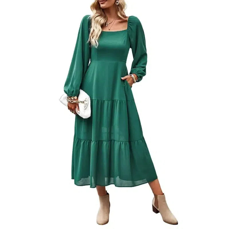 Fyrkantig krage Klänning Kvinnligt temperament Elegant klänning