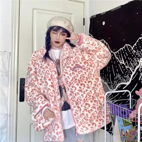 Koreansk version av rosa lammull lös vadderad vinterjacka