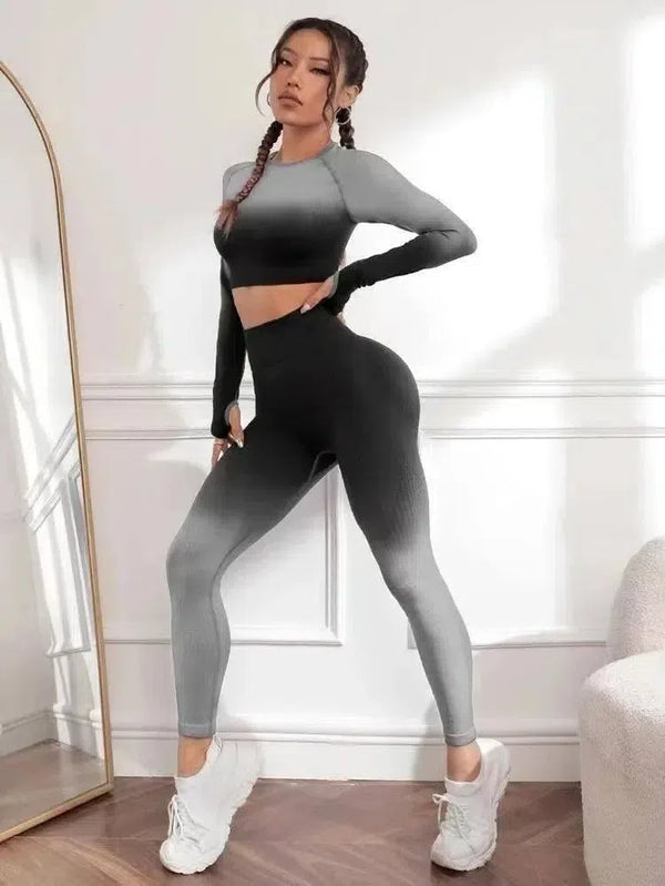 Kvinnor Yoga 2 delar träningskläder Sömlös hög midja