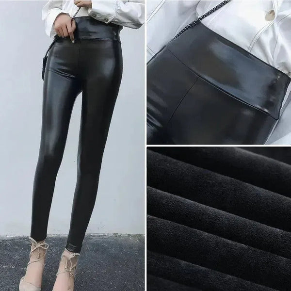 Läderbyxor dam tjock stor storlek hög midja PU läder