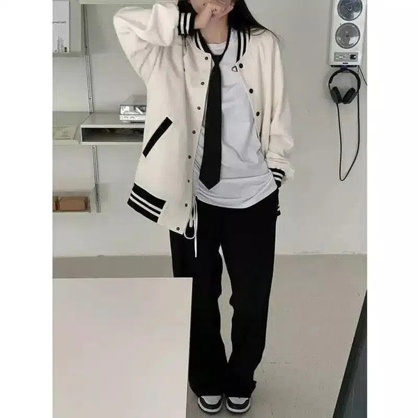 Varsity-jacka med randiga muddar och tryckknappsstängning