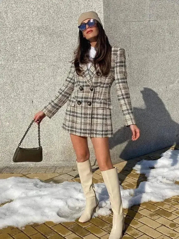 - Typ av plagg: Rutig miniklänning i blazerstil