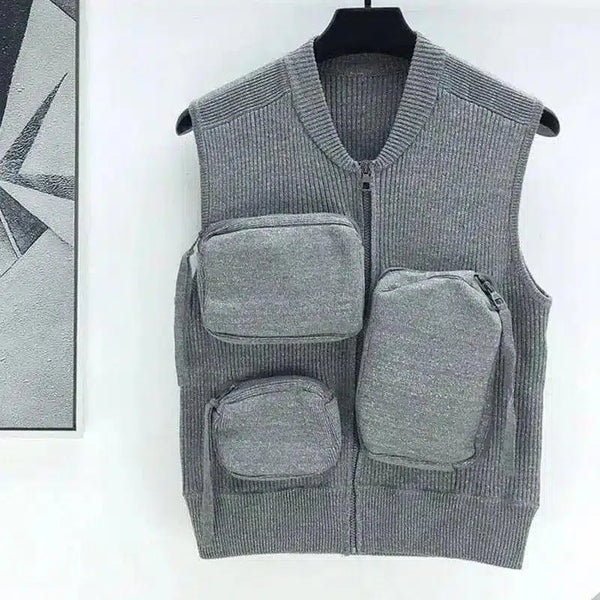 Stickad väst med flera fickor för förvaring