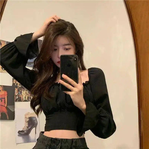 Höst älva Ruffad fyrkantig halsringning midja puffärmar