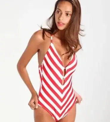Bikini i ett stycke baddräkt randig axelrem