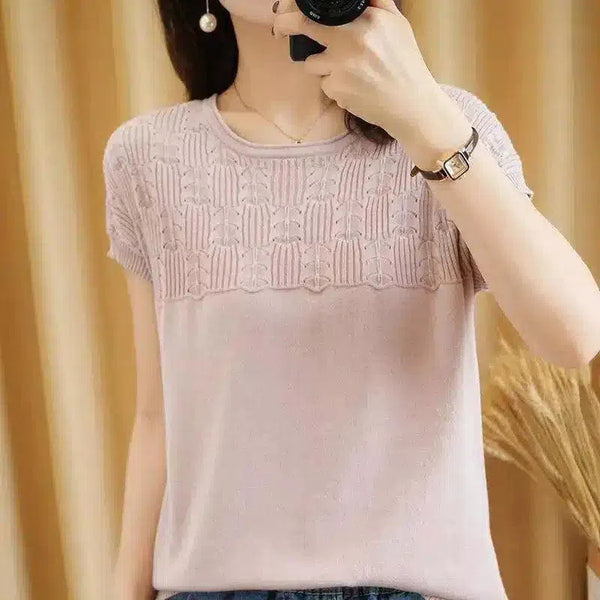 Kortärmad stickad topp med strukturerad design för kvinnor