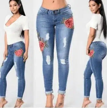 Produktbeskrivning: Stretch Jeansbyxor med broderi