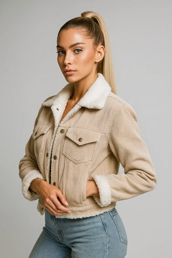 - Ärmlängd Nackringning: Klassisk krage med fuskpälsdetalj