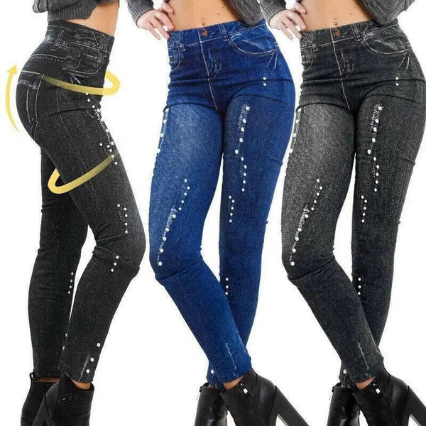 Leggings med denimtryck