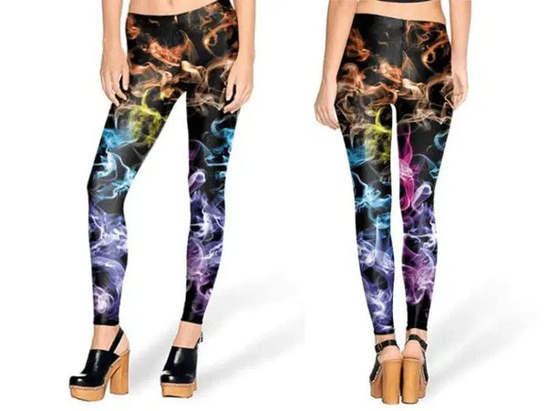 - Passform Design: Vibrerande, flerfärgat rökmönster på en mörk bakgrund