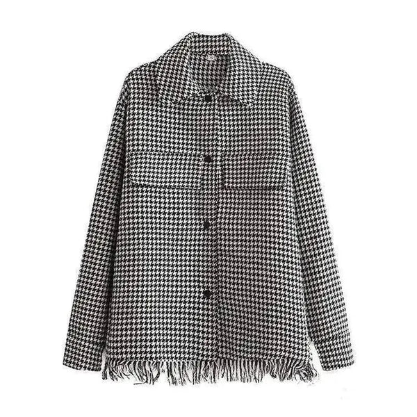 - Designdetalj: Houndstooth-mönster med fransar i nederkant
