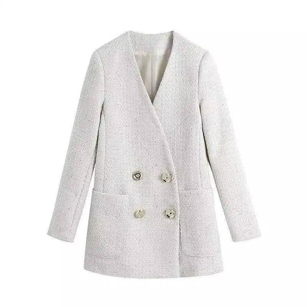 - Halsringning Passform: Skräddarsydd passform med en strukturerad silhuett