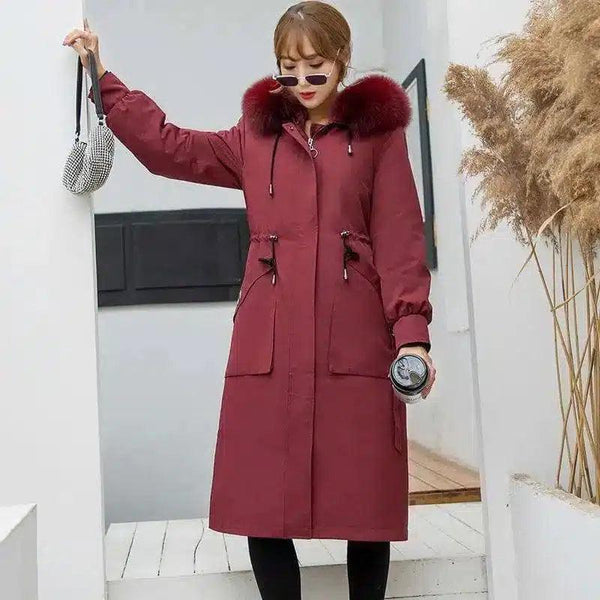 - Ärmlängd Nackringning: Hög krage med fuskpälskant