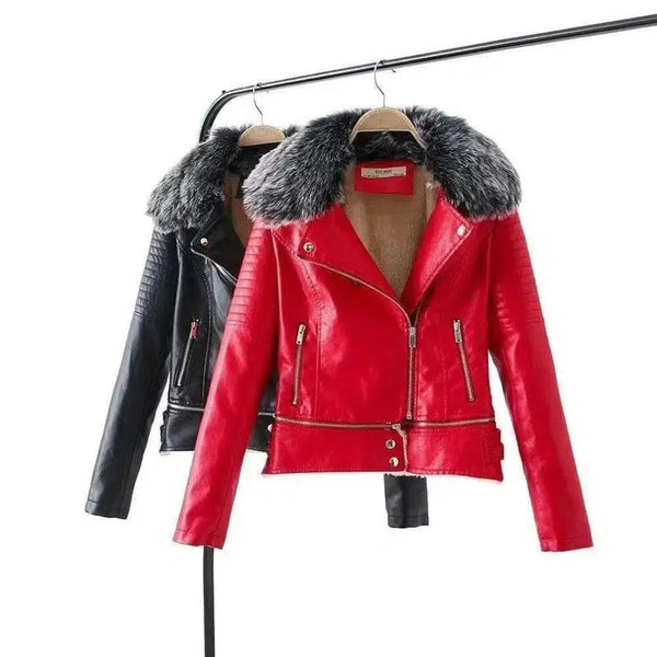 Skinnjacka med pälskrage