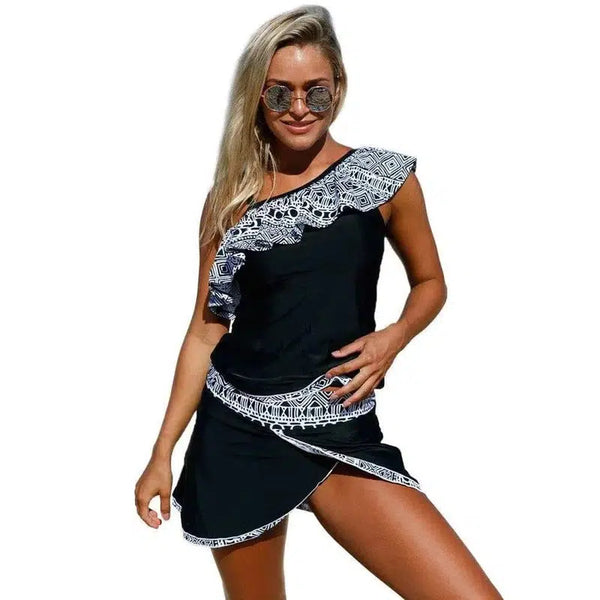 Strandkjol med volanger i geometriskt tryck Split Baddräkt
